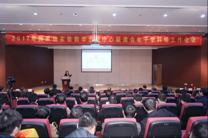 4月8日,2017年国家级实验教学示范中心联席会电子学科组工作会在南京大学仙林校区图书馆报告厅隆重召开。本次会议由国家级实验教学示范中心联席会电子学科组和江苏高校实验室研究会共同主办,南京大学电子科学与工程学院电子信息专业国家级实验教学示范中心承办。