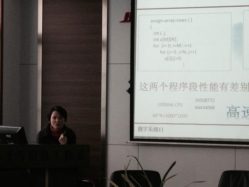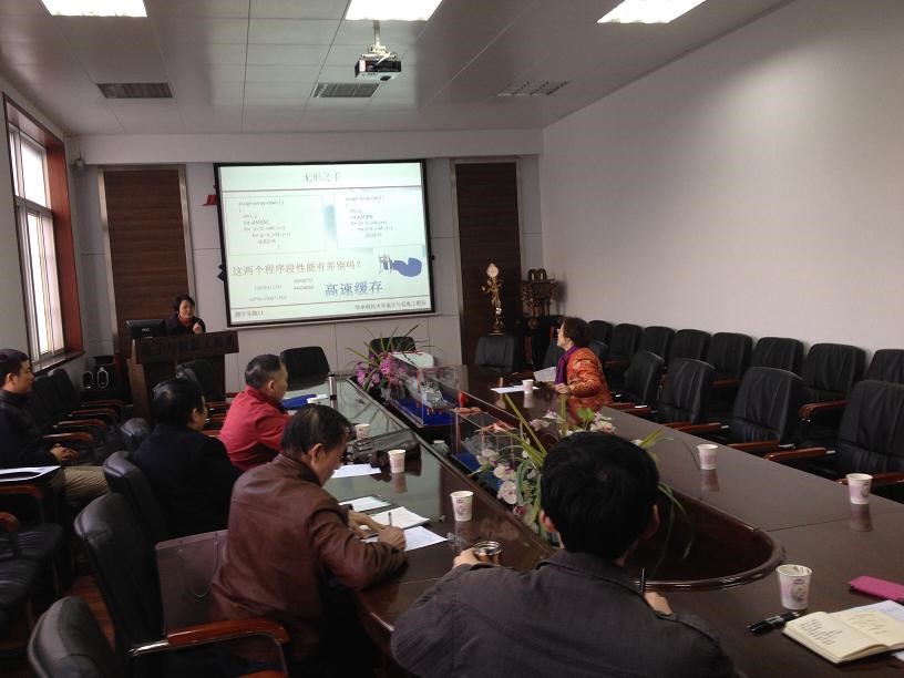 教学竞赛由本科教务科组织,副系主任程文青首先致辞。她希望各课程组要从思想上高度重视教师教学竞赛活动,从提高人才培养质量的高度出发,使全体教师进一步提高教学质量。竞赛评委为电信系教学委员会成员、课程组组长以及校级、系级教学督导员等。教务处质量科科长蔡红梅老师和往届校教学竞赛一等奖获得者:生命科学学院付春华老师、电信系刘玉老师和钟国辉老师作为特邀评委出席。