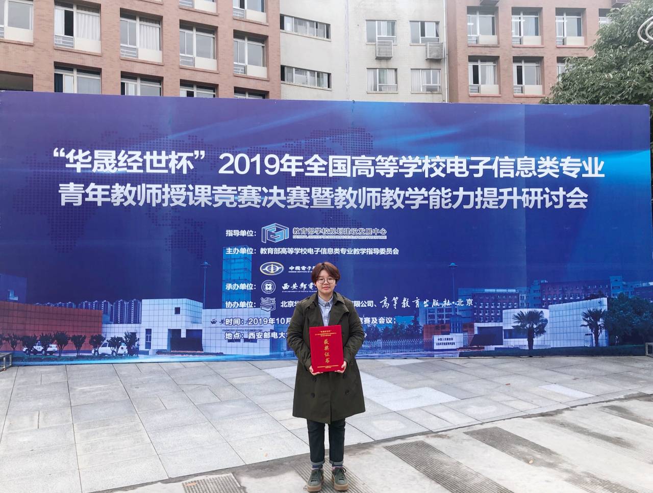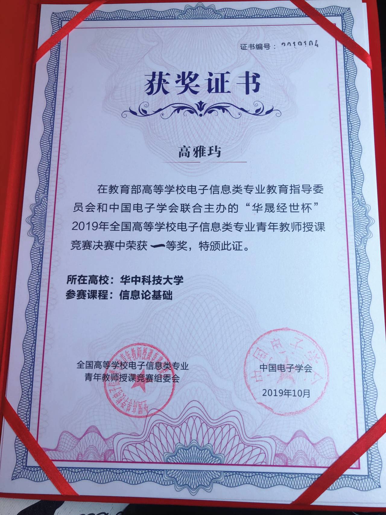 副院长程文青教授、黑晓军老师等资深教师团队的指导帮助。比赛中,高雅玙将理论知识与实际生活进行有机结合,运用问题驱动、剥洋葱式、让理论“活”起来、微课结合讲授等教学方法,对较为抽象的理论问题进行抽丝剥茧的分析。从“为什么要进行数据压缩”、“能不能对数据进行压缩”到“能不能无止尽地对数据进行压缩”,层层递进,抵达核心问题。她现场深入浅出的讲授、风趣生动的举例,将数学推导赋予直观的实际意义,再映射到如何解决复杂的工程问题,受到了评审专家和观摩教师的一致好评。