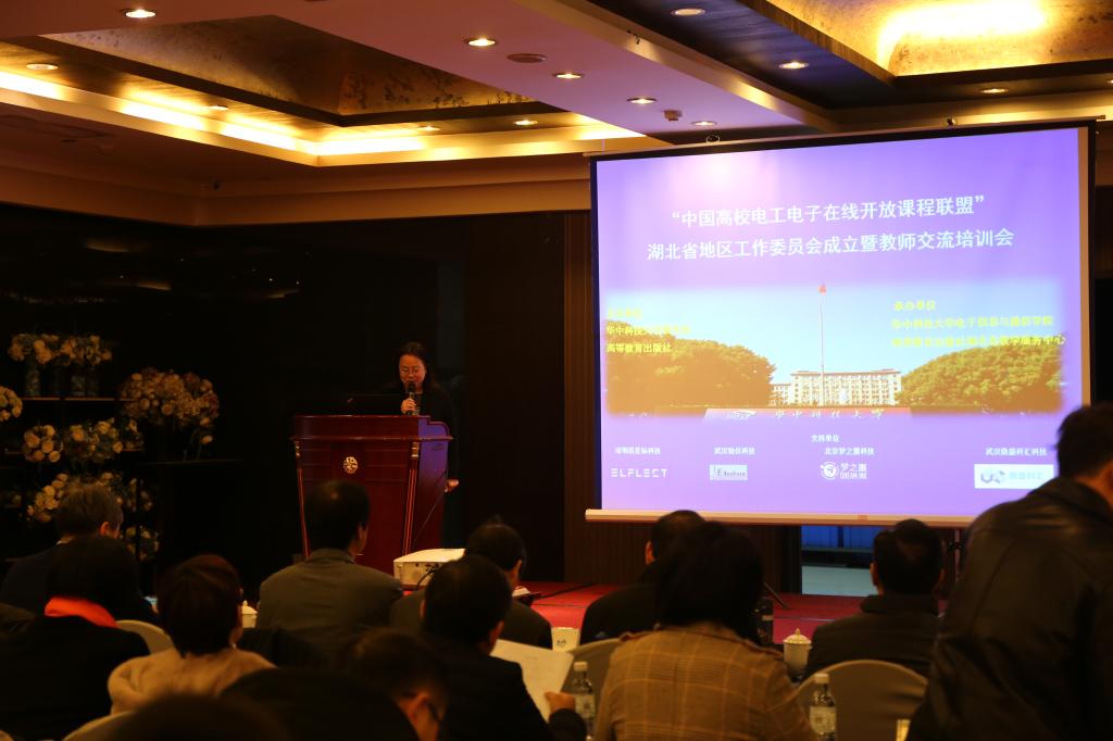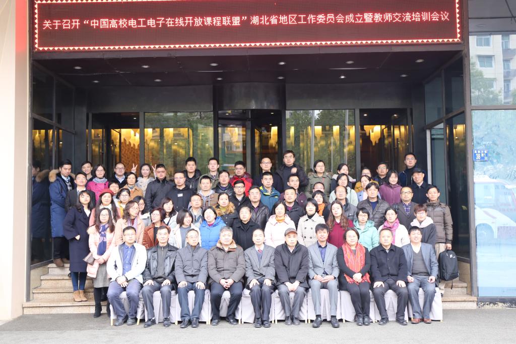 为响应教育部建设一流课程的“双万计划”,更大范围、更大力度推进在线开放课程建设与应用共享,促进信息技术与教育教学深度融合,推进基于在线开放课程的新型教学模式创新发展,推动新时代高等学校教学模式改革,提高教学质量,同时推进湖北省高校电工电子相关课程建设与改革,提高教师教学水平,12月21日,由我校承办,高等教育出版社协办的中国高校电工电子在线开放课程联盟湖北省工作委员成立暨教师交流培训会顺利召开。湖北省内近百名高校相关院系领导和骨干教师参加了会议。