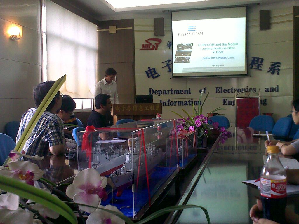 5月17日下午,Petros Elia一行参观武汉光电国家实验室光通信与智能网络研究部,并与朱光喜教授等师生就深入双方的学术交流和科研合作进行富有成效的洽谈。