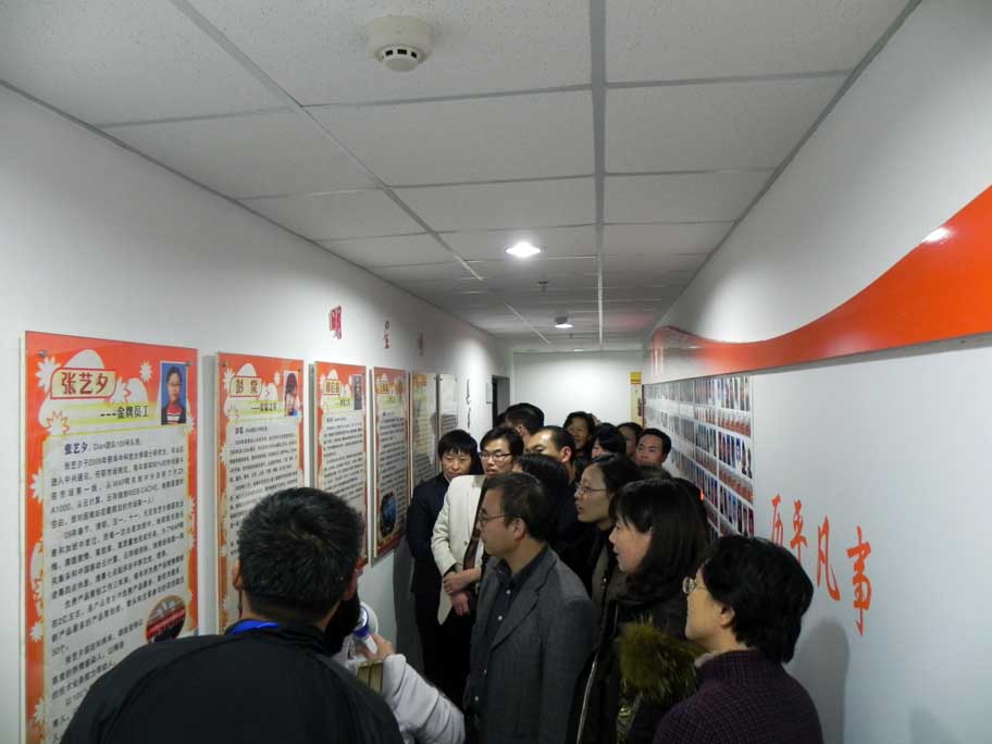 最后,代表们来到七楼的Dian团队,刘玉老师亲自讲解,大家非常认真的了解Dian团队的成长历程、运作模式、管理技巧和所获成果。有些代表还直接进入实验室里面与周末坚持工作的Dian团队队员深入交流。刘玉老师热情而风趣的讲解,给代表们留下了深刻印象。临别前,代表们纷纷在“启明学院”四个大字下与刘玉老师合影留念,大家对我校创新人才培养的理念、思路和力度给予了高度评价,一再表示要将我校的好经验带回去宣传学习。