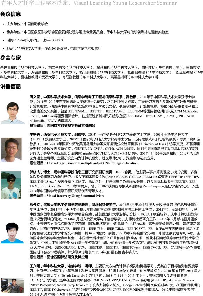 澳大利亚国家ICT(NICTA)高级研究员Xuming He 学术报告