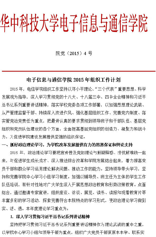 院党(2015)4号 91论坛 2015年组织工作计划