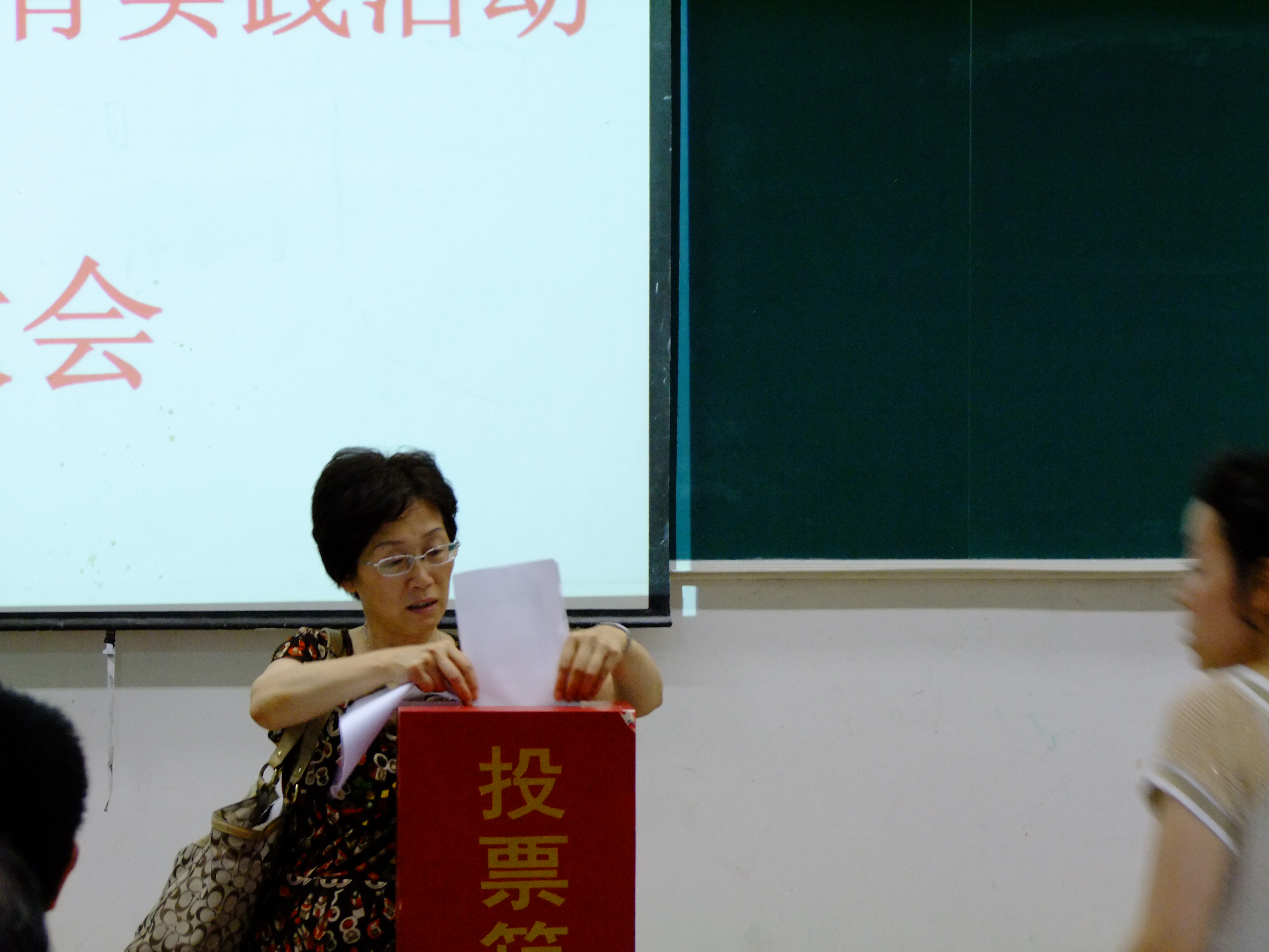 刘玉教授将民主评议表投入票箱
