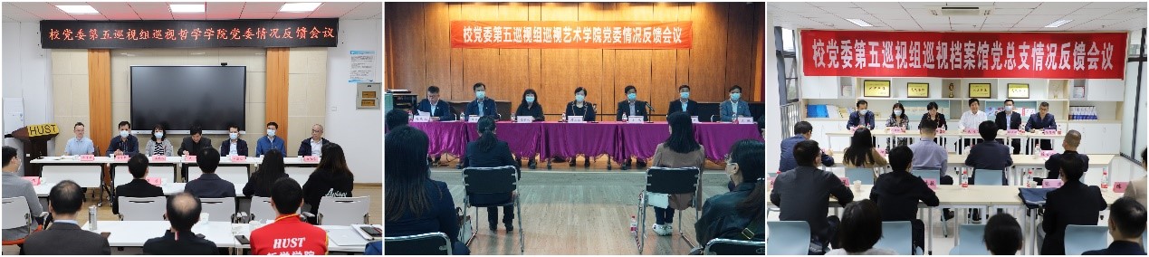 图为校党委第五巡视组巡视哲学学院党委、艺术学院党委、档案馆党总支情况反馈会。