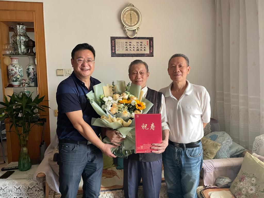 党委书记郑小建代表学院党委到退休刘华志家里,恭喜刘华志老师90寿辰,向刘华志老师表示了生日的祝福,祝刘老师生日快乐,身体康健。