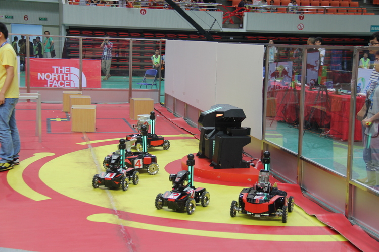 本次大赛采取了“战车射击大战”这一全新的比赛模式,是对传统机器人大赛的重新定义,对于参赛选手和现场观众来说,都是一场酣畅淋漓的科技盛宴。比赛场地设在一个篮球场大小的区域内,四周竖起透明的防护围栏,场地中设有模拟各种战斗情境的障碍物。基地、维修站、瞭望塔、补给站,军事设施一应俱全,场地实现全智能化实时控制,观众的视听感官兴奋神经随战况一触即发。