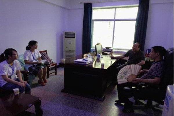 电信系分团委副书记陈超洁首先带领一组队员人走访了奉节县委。7月16日上午,队员们在负责县志编撰的办公室对访了县委的郑永元。通过他提供的奉节县移民期间和现在的文档资料,它们涵盖了经济、工农业、医疗卫生事业、教育产业等各个方面,队员们了解了奉节在移民前后发生的巨大变化,感叹移民工作量之大。