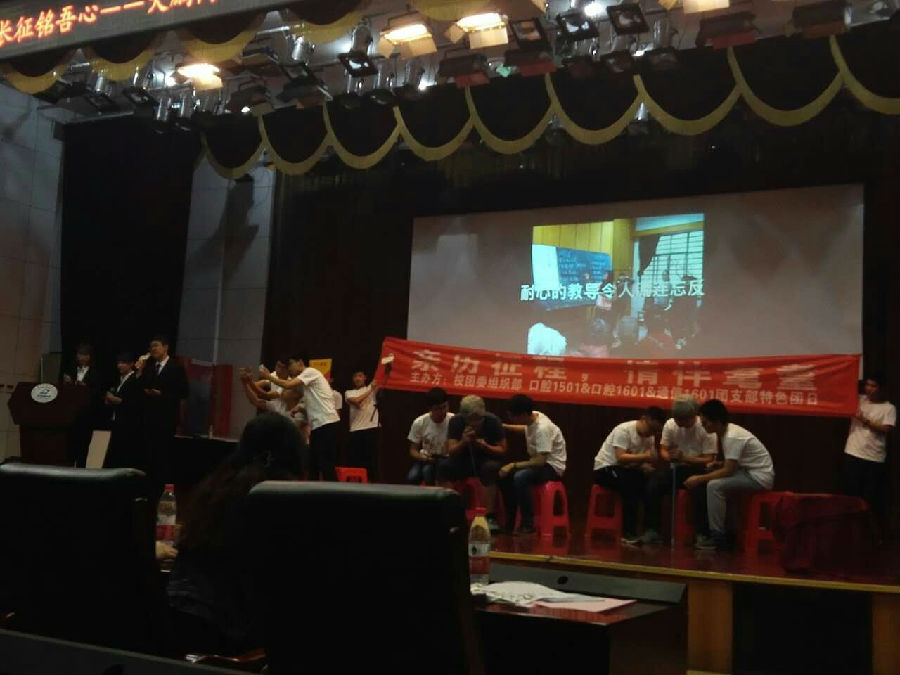 在短短两个半小时的时间里,校二十佳支部接连登场,联手为评委和观众送上这场年度大戏。舞台上人来人往,人声鼎沸,台下惊叹连连,喝彩叫好。二十个支部答辩形式风格迥异,百花齐放,将大会气氛一次又一次推上高潮。值得一提的是,晚会开场的民族舞蹈、晚会中穿插的古筝四重奏和对口相声表演,在极具观赏性的同时也向观众们展示出中国传统文化的巨大魅力。