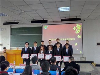 接下来,由李小猛老师为2016届分团委学生会主席团颁发聘书。