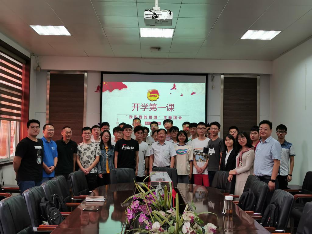电信1807团支部在南一楼中302室召开了“我和我的祖国”主题团会,校党委常委、副校长解孝林老师出席并参加了团会。