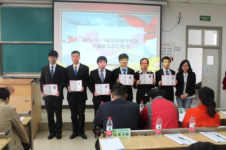 根据会议议程,学院领导和老师们为这些奋斗在一线学生工作岗位的团学联部长们颁发了聘书,肯定其对91论坛