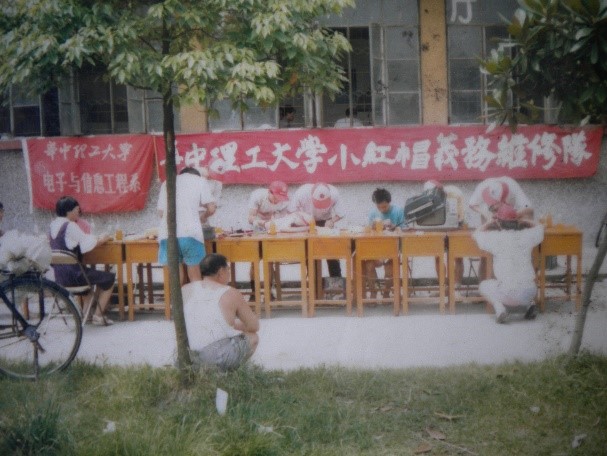 主校区)学生宿舍和喻园教师小区等地,维修物品大部分为电扇,受众主要为学校老师和校园周边的居民。说实话,在那段时间内,小红帽的条件是较为艰苦的,当初小红帽之所以能够坚持下来,全凭的是老一辈队员们那种不灭的热情以及对知识的追求,正因为有了他们的拼搏努力,才有了现在的、拥有着24年历史的小红帽。