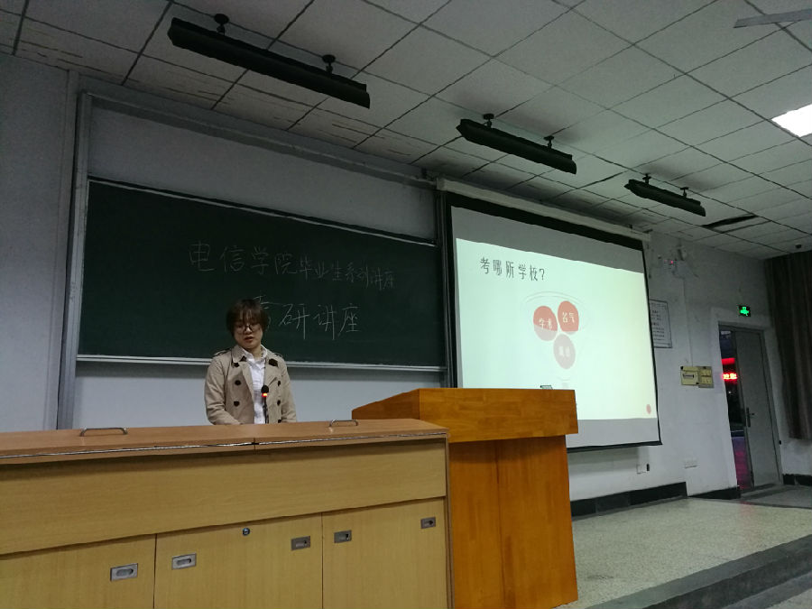方妍学姐首先提出同学们要提前确认自己毕业后的方向。是出国,保研,考研还是工作?提前作出选择,才能在大学四年不至于失去方向。如果确定了要考研,那么就要选择是本校还是外校。学姐认为从应该要从学术氛围、院校名气、所处城市三个方面来确立自己的目标,这和我们当初高考填报志愿相似。最后学姐还分析了清华大学电信系的两个硕士点的优劣。