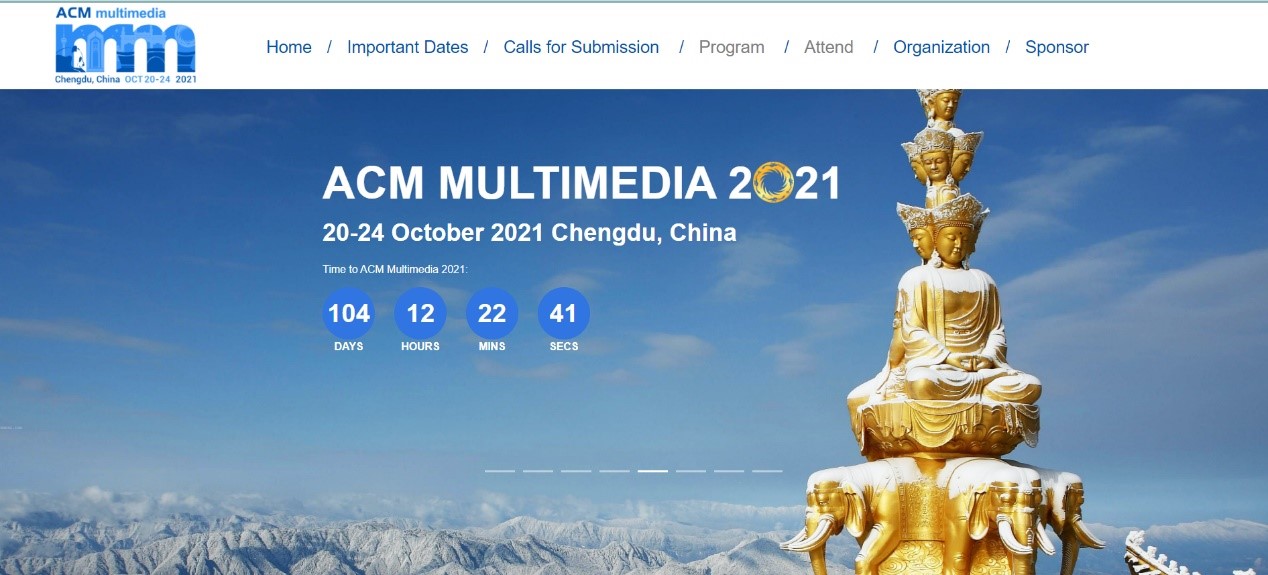 自 1993 年 ACM SIGMM 成立以来,ACM Multimedia 一直是展示多媒体领域科学成果和创新工业产品的全球首屈一指的会议和重要的世界盛会。 ACM Multimedia 2021 将有史以来第一次在中国四川省省会成都举办。 在 ACM 多媒体 2021 上,组委会将通过口头、视频和海报演示、教程、小组、展览、演示、研讨会、博士座谈会、多媒体大挑战、勇敢的新想法等形式,展示涵盖多媒体领域各个方面的技术会议 和 关于塑造研究领域、开源软件竞赛,以及鼓励艺术家和计算机科学家共同认识和发现艺术交流前沿的互动艺术项目。