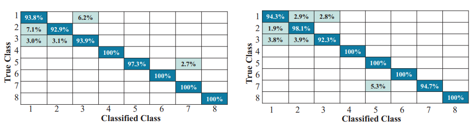 王巍教授团队分别在三种常见的GNSS接收器上实现了GPSense系统,在使用GPSense技术对八种典型的动作进行了分类识别,平均识别准确率均在94%以上。