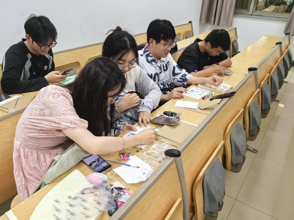 活动的最后一个环节是充满创意和欢乐的纪念相框绘制游戏。支部特别为毕业党员们准备了空白相框和各类绘画原材料,以党小组为单位,为即将毕业的学长学姐们进行创意绘制设计。大家纷纷执笔,精心构思,现场洋溢着欢声笑语。每一幅纪念相框都独具匠心,既展现了学弟学妹的艺术巧思,又承载了对毕业生的深切祝福。毕业生们手捧这些独特的纪念相框,将带着支部成员的心意,扬帆起航,奔赴人生新的征程。