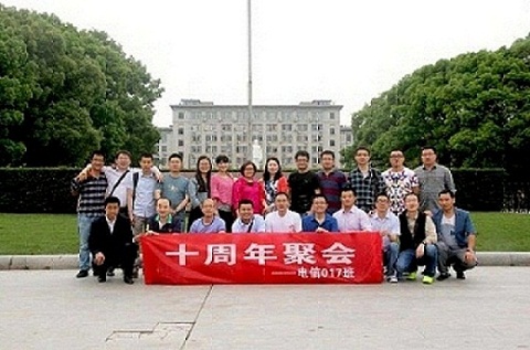 电信20016班25位校友于6月6日在学校聚会,此次聚会主题是:忆四年喻园深情,叙十年成长历程。主办人精心规划了这次活动,返校聚会活动安排丰富多彩,用华中大深度游再次体验学生时代的生活,各景点即是看西边操场;观紫菘公寓;走青年园;登喻珈山;百景园用餐等等。在西五楼教室召开座谈会,叙旧情, 分享十年成长历程。