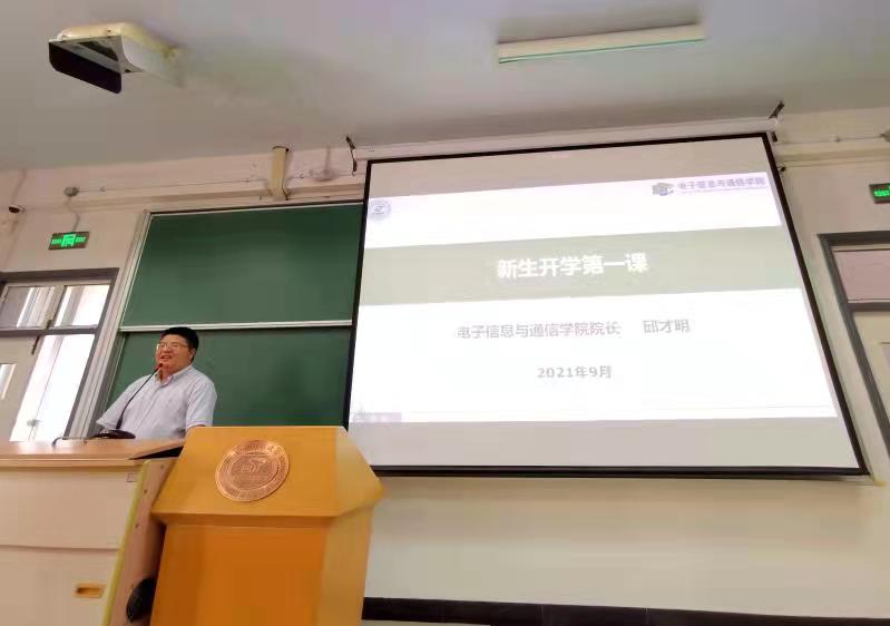 院长邱才明教授为全体研究生新生讲授了开学第一课。邱院长首先以学院历史沿革、学科建设、卓著贡献、知名校友等方面为出发点,阐明了学院以“感知+智能+通信”为中心的学科架构、建设重点与发展动态,激励同学们铭记初心使命,做好继承者和接班人;树立远大理想,做好立志者和践行人。邱院长强调读研期间应主动进行有价值的学术研究,敢于创新且乐于创新;希望研究生们珍惜校园生活,合理利用资源,对未来做好清晰规划,上大舞台、干大事业。