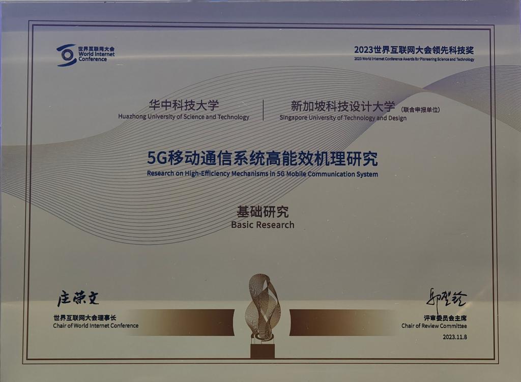 主导,与新加坡科技设计大学联合申报。该成果专注于解决5G能效问题,特别是针对5G超密集蜂窝网络架构、基站拓扑理论以及高能效低延时接入等方面的挑战。该项目首次揭示了5G网络作为一种密度受限无线通信系统的本质,打破了基站密度与吞吐量/能效关系的传统定论;提出了一种5G高能效网络拓扑优化理论,成功攻克了网络能效的一大痛点难题——解耦问题,为移动通信网络的全局协调优化提供了新的理论基础。