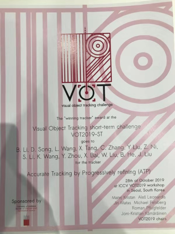 白翔教授、刘文予教授和周瑜老师的指导下通过提出ATP算法在短视频追踪赛道斩获冠军。