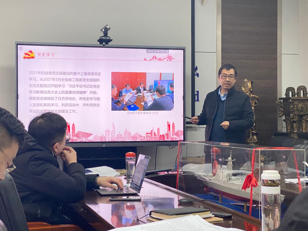 信息系党支部书记朱明汇报了党支部工作并对新一年的党支部工作做出了展望。他提到,2021年是中国共产党建党100周年,开展党史学习教育工作,是党中央作出的一项重大决策部署,其意义重大、影响深远,信息系党支部积极响应号召,坚持党史学习,通过支部委员集体学习、支部微党课等多种形式开展多次党史学习教育,用党的伟大成就激励广大教师党员,从党史中汲取奋进力量。提到下一年党支部工作计划,朱明表示将重点做好协助学院搬迁和教师党员发展工作。