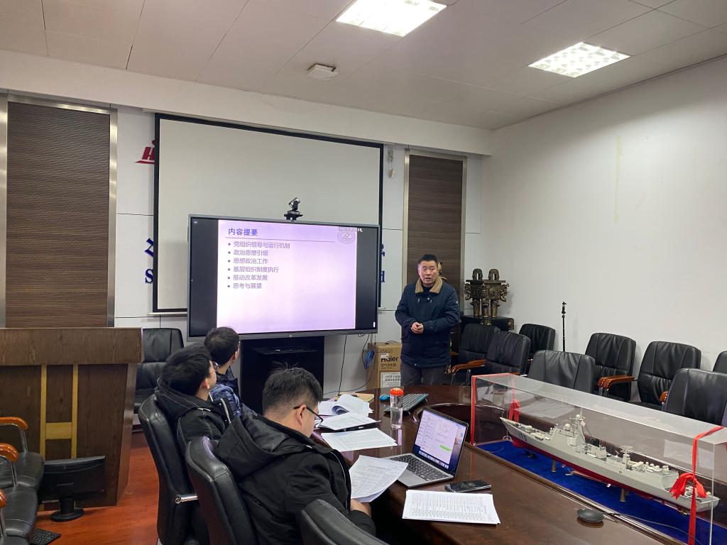 电子系党支部书记贺锋就支部活动开展情况、党员发展情况、思想政治工作、师德师风教育等方面做了汇报,电子系党支部在电子系搬迁方案细化落地、电子系生源问题解决方案、引进青年教师等方面发挥了重要的作用,未来支部将采取更加积极主动人才引进措施,进一步加强与学生党支部的共建。