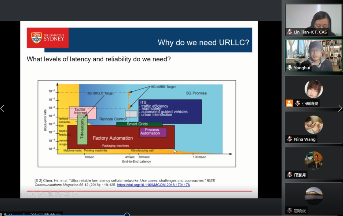 悉尼大学李永会教授作题为URLLC for 5G and beyond(用于5G及以上的超可靠低时延通信)的报告,介绍了URLLC的可靠性和时延,展示了不同种类的短码的相关仿真结果,重点介绍了基于深度学习的通信系统,展示了基于人工智能对URLLC的研究结果。