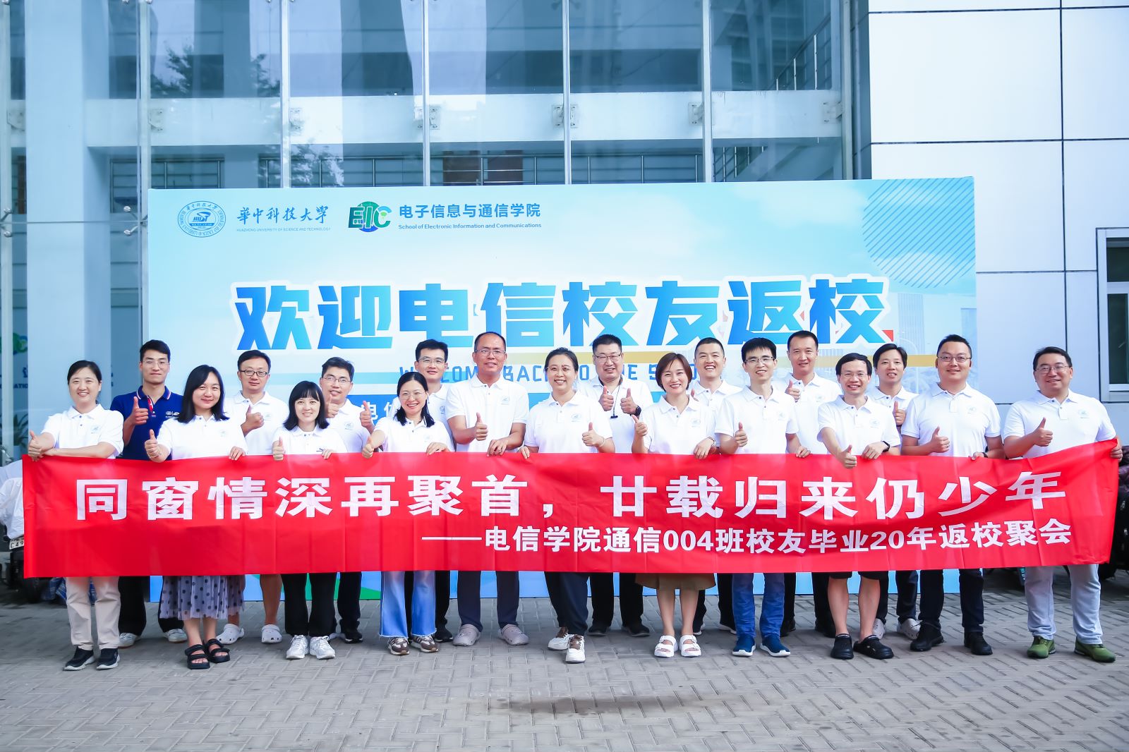 梅雨淅沥,柳丝飘摇,重逢情更浓。2024年6月29日下午,华科大校园内洋溢着久别重逢的喜悦与温暖。电信系2000级通信004班的校友们,在毕业二十年后再次齐聚母校,共同追忆那段充满激情与梦想的青春岁月。