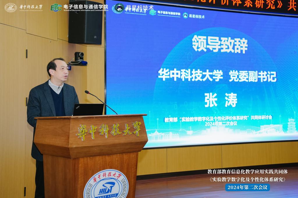12月7日,教育部“实验教学数字化及个性化评价体系研究”共同体研讨会在我校八号楼求是报告厅召开。校党委副书记张涛出席开幕式并致辞。