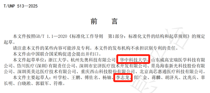 2022级博士生李志龙同学参与起草的团体标准《医用内窥镜摄像系统通用技术要求》(编号:T/UNP 513-2025)在全国团体标准信息平台正式发布。