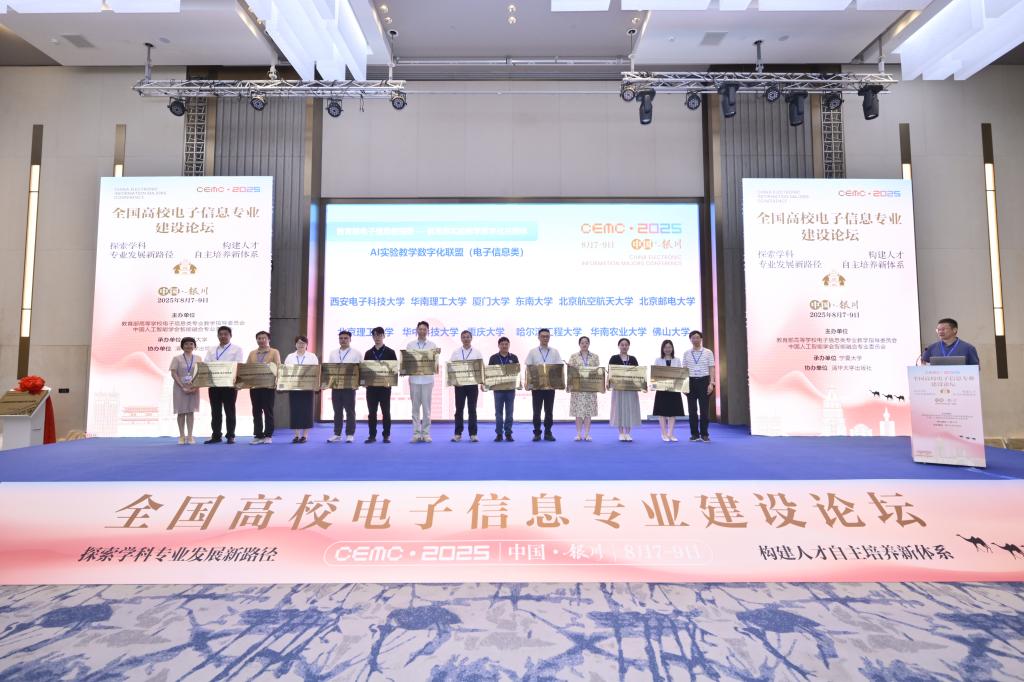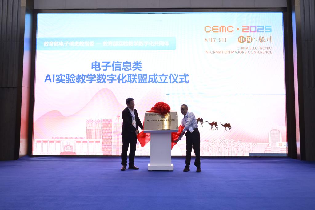 2025年8月8日,在教育部电子信息类专业教学指导委员会和教育部《实验教学数字化及个性化评价体系》共同体的联合发起下,“AI实验教学数字化联盟(电子信息类)”在银川隆重举行成立仪式。4位院士及23位教育部电子信息类专业教学指导委员会委员、200余所高校,400余位电子信息相关专业院校领导、骨干教师共同见证了这一重要时刻。