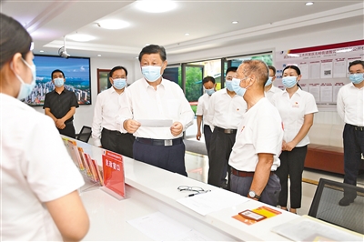 6月28日,中共中央总书记、国家主席、中央军委主席习近平在湖北省武汉市考察。这是28日下午,习近平在东湖高新区左岭街道智苑社区党群服务中心,向社区工作者了解党建引领基层社区治理及便民服务等情况,并同前来办事的老年人亲切交谈。 新华社记者 谢环驰摄 |
